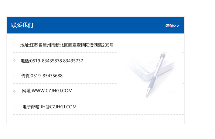 傳真:0519-83435688    郵編:213135    網址:WWW.czjhgj_com.ahkl168.com    電子郵箱:JH@czjhgj_com.ahkl168.com